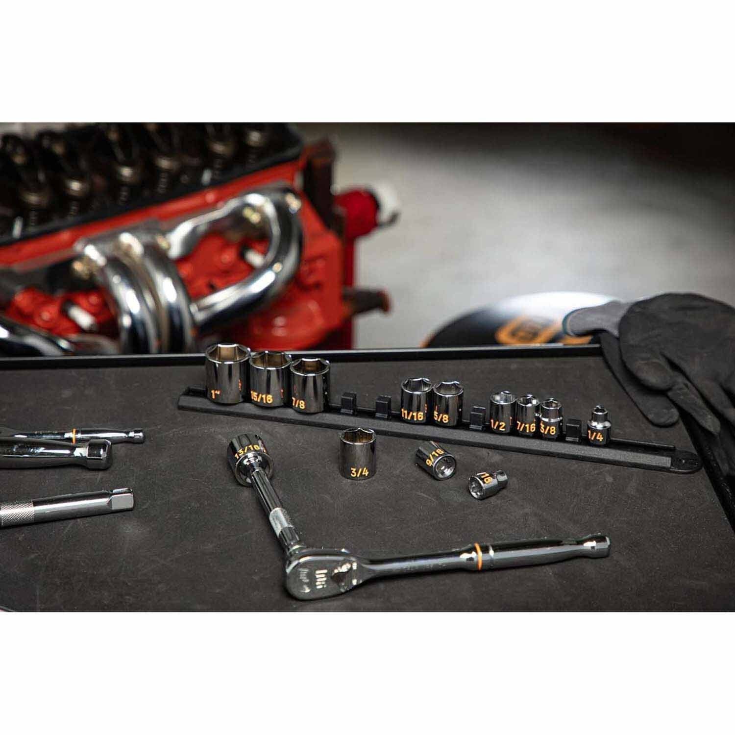 - (13) 6-Point SAE Sockets: 1/4 in, 5/16 in, 3/8 in, 7/16 in, 1/2 in, 9/16 in, 5/8 in, 11/16 in, 3/4 in, 13/16 in, 7/8 in, 15/16 in, 1 in