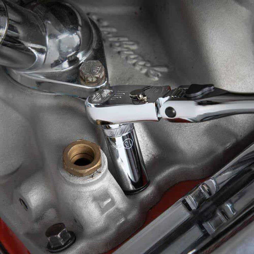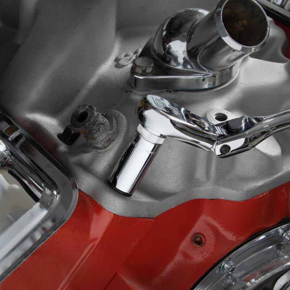 Living up to the reputation of the brand, GEARWRENCH full polish chrome sockets deliver unprecedented speed, strength, and access to almost any job. Large, hard-stamped markings allow for easy identification and can be easily recognized as SAE (double line) or metric (knurled line). Additionally, the off-corner loading design puts force on the flats of fasteners for improved durability and reduced fastener rounding. Available in standard, mid-length, and deep lengths, the GEARWRENCH sockets will get the job done.