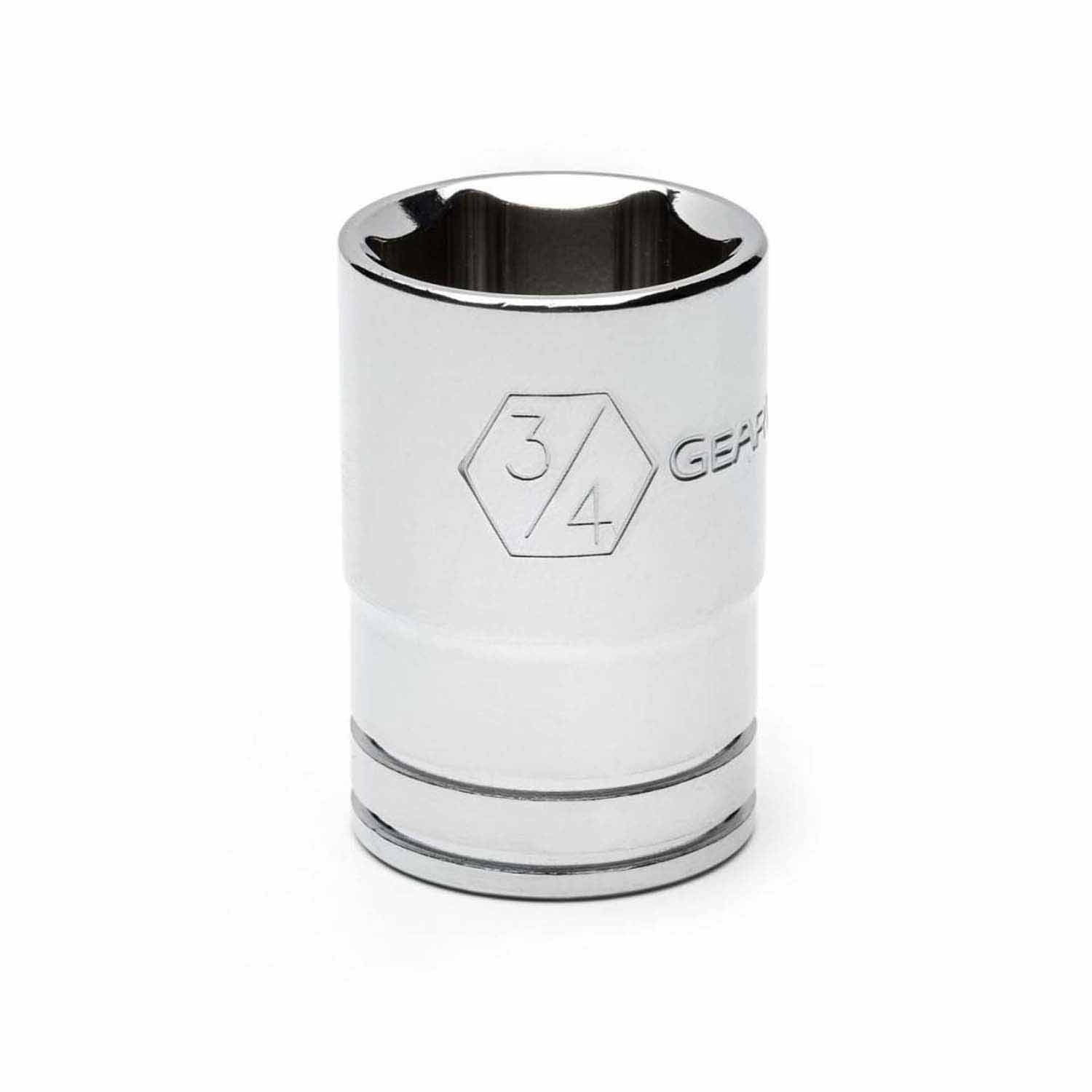 The GEARWRENCH 1/2" Drive 6 Point Standard SAE Socket 3/4" is a durable and reliable tool designed for professional use, featuring a bright chrome finish and off-corner loading design.