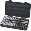 | Set Components | Ratchets 2 Extensions Universal Joint 12 Standard SAE Sockets 8 Deep SAE Sockets 15 Standard Metric Sockets 10 Deep Metric Sockets |
