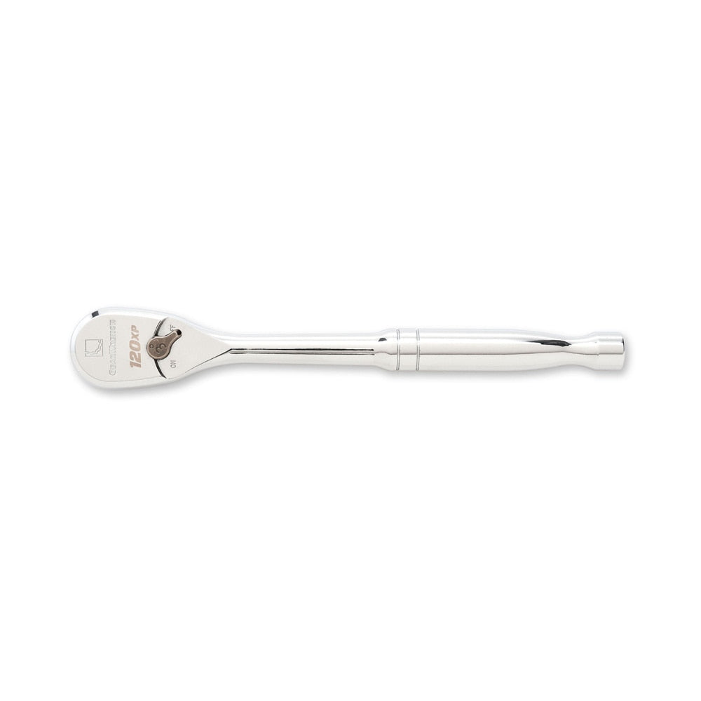 The GEARWRENCH 120XP mechanics tool sets feature our 120 tooth ratchets, that take access and speed to the next level, making it easier and quicker to complete jobs. The double stacked pawl design gives 120 positions which gives a 3 degree ratcheting arc. All of the ratchets feature a low profile head and flush mounted on/off switch, allowing better access in tight spaces. The ratchets have an enclosed head design which allows for extreme resistance to dirt infiltration. The GEARWRENCH sockets are made from chrome vanadium steel with a full polish chrome finish that is easy to clean and resists corrosion. The sockets feature larger, hard-stamped size markings, as well as, the double ring (SAE) and knurled ring (metric) for easy identification while on the job. They feature off-corner loading to reduce fastener rounding and the chamfered opening helps guide the socket on to the fastener.