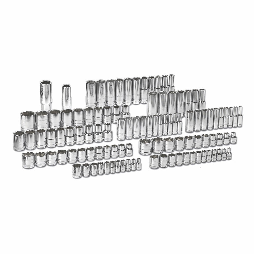 | Set Components | 3 Ratchets Socket Driver 4 Extensions Bit Adapter with 23 Bits 13 Long Arm Hex Keys 12 Combination Wrenches 11 1/4" Drive Standard SAE Sockets 13 1/4" Drive Standard Metric Sockets 10 1/4" Drive Deep SAE Sockets 11 1/4" Drive Deep Metric Sockets 11 3/8" Drive Standard SAE Sockets 12 3/8" Drive Standard Metric Sockets 7 3/8" Drive Deep SAE Sockets 11 3/8" Drive Deep Metric Sockets 10 1/2" Drive Standard SAE Sockets 10 1/2" Drive Standard Metric Sockets 2 Spark Plug Sockets |