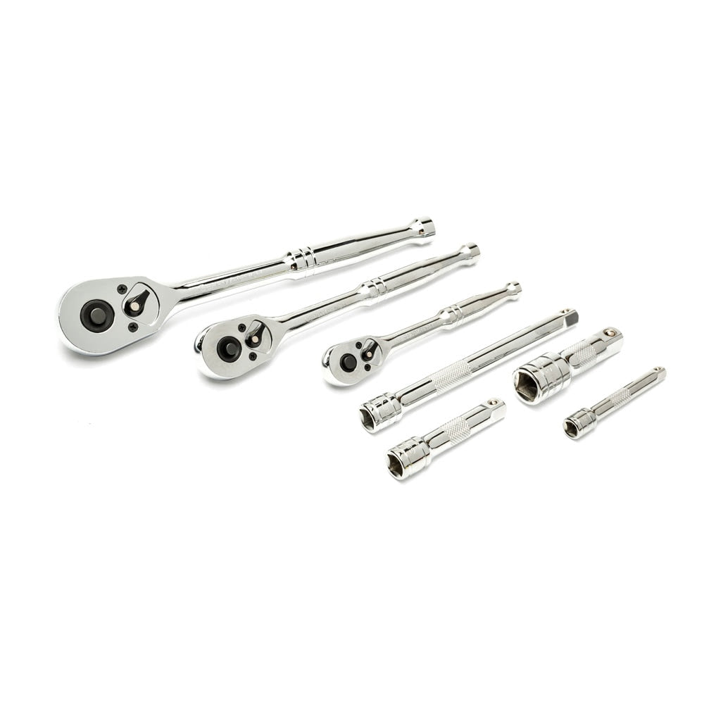GEARWRENCH mechanics tools have all been designed with the professional user in mind to increase productivity, access, and strength. The ratchets, sockets, and wrenches are made from premium alloy steel and feature a full polish chrome finish. The 80932 is a 165 piece 1/4 in., 3/8 in., and 1/2 in. drive set that features both 6 point and 12 point sockets in SAE and metric sizes and in standard and deep lengths. Also included in the set are 3 quick release ratchets, various drive tools, a 13 piece long arm SAE hex key set, and 10 each SAE and metric long pattern combination wrenches. Set is furnished in a blow mold case for storage and organization.