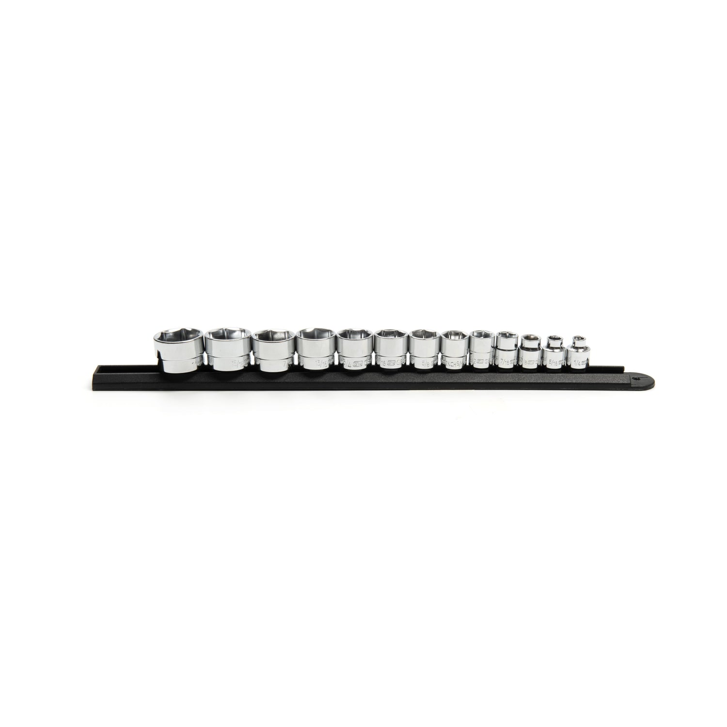 - Set packed on a durable socket rail providing secure storage for sockets