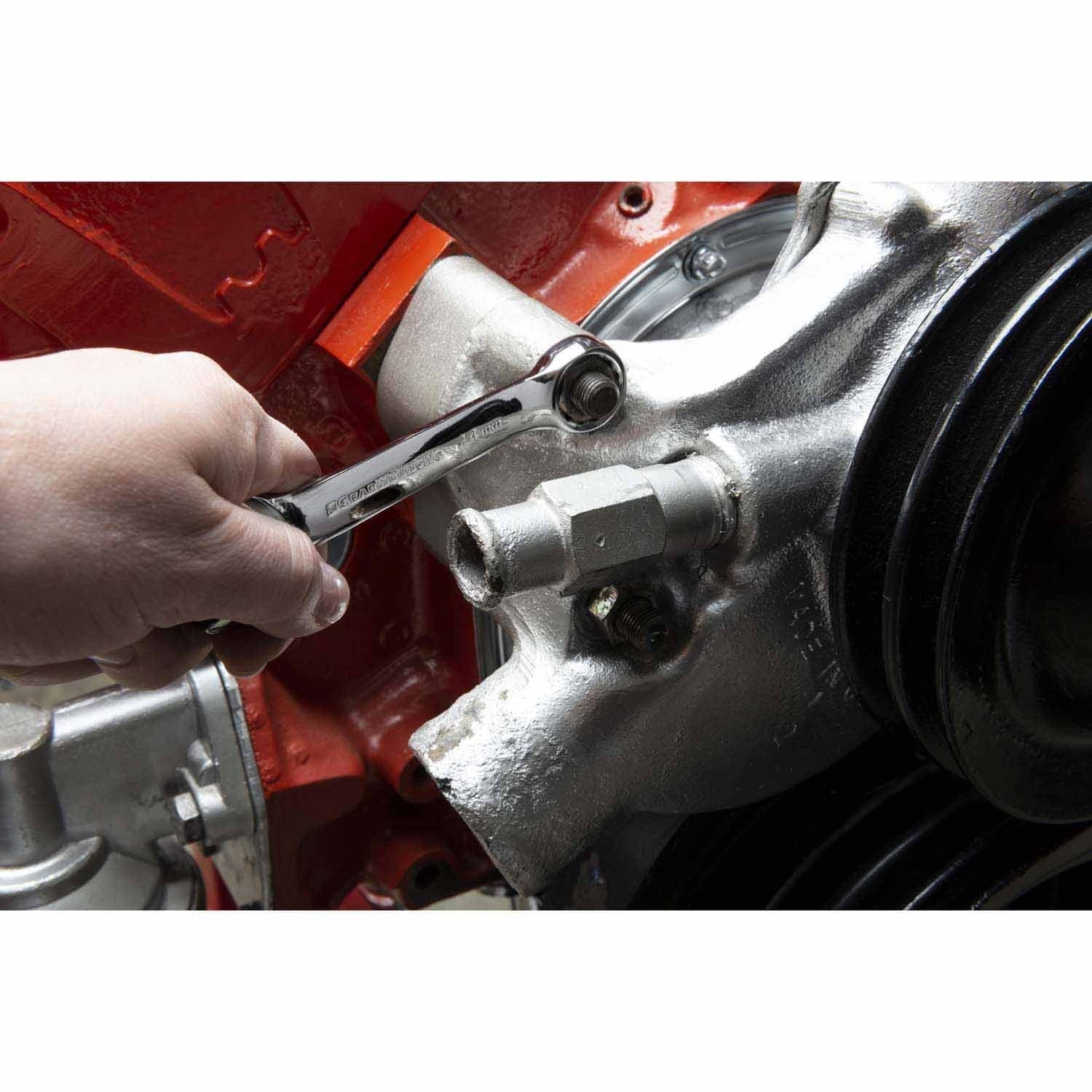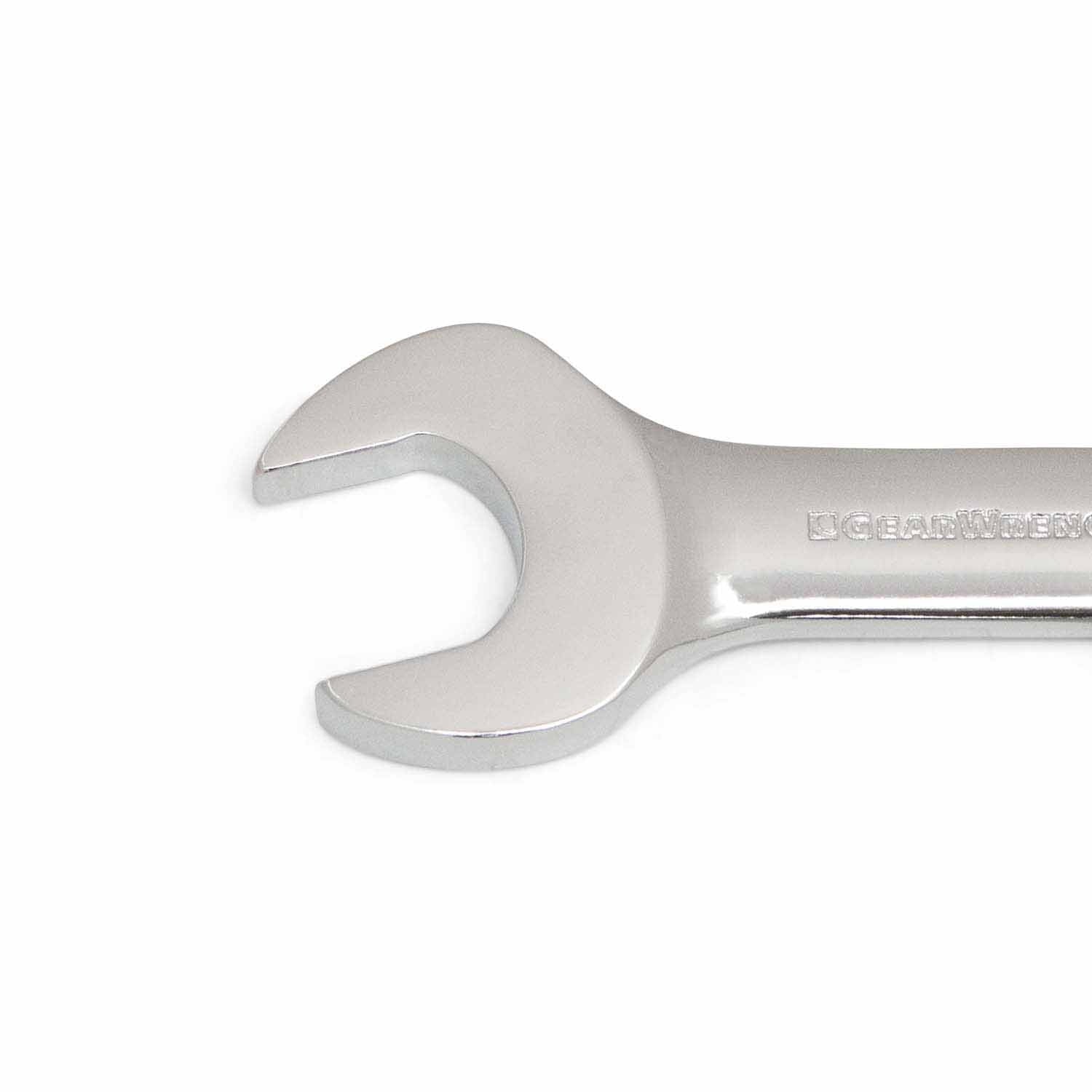 The GEARWRENCH combination wrenches are durable, made from alloy steel with a bright, full polish finish. The off-corner loading design on both ends provides a stronger grip on fasteners, reduces fastener rounding, and delivers up to 25% more torque to the fasteners. Sizes are stamped on the open end head, as well as the beam for quick and easy identification. The box end is offset 15° for increased access to fasteners. The 81904 is a 10 piece 12 point, metric stubby length set including 10 mm to 19 mm sizes. The set comes in a blow molded tray for storage and organization.