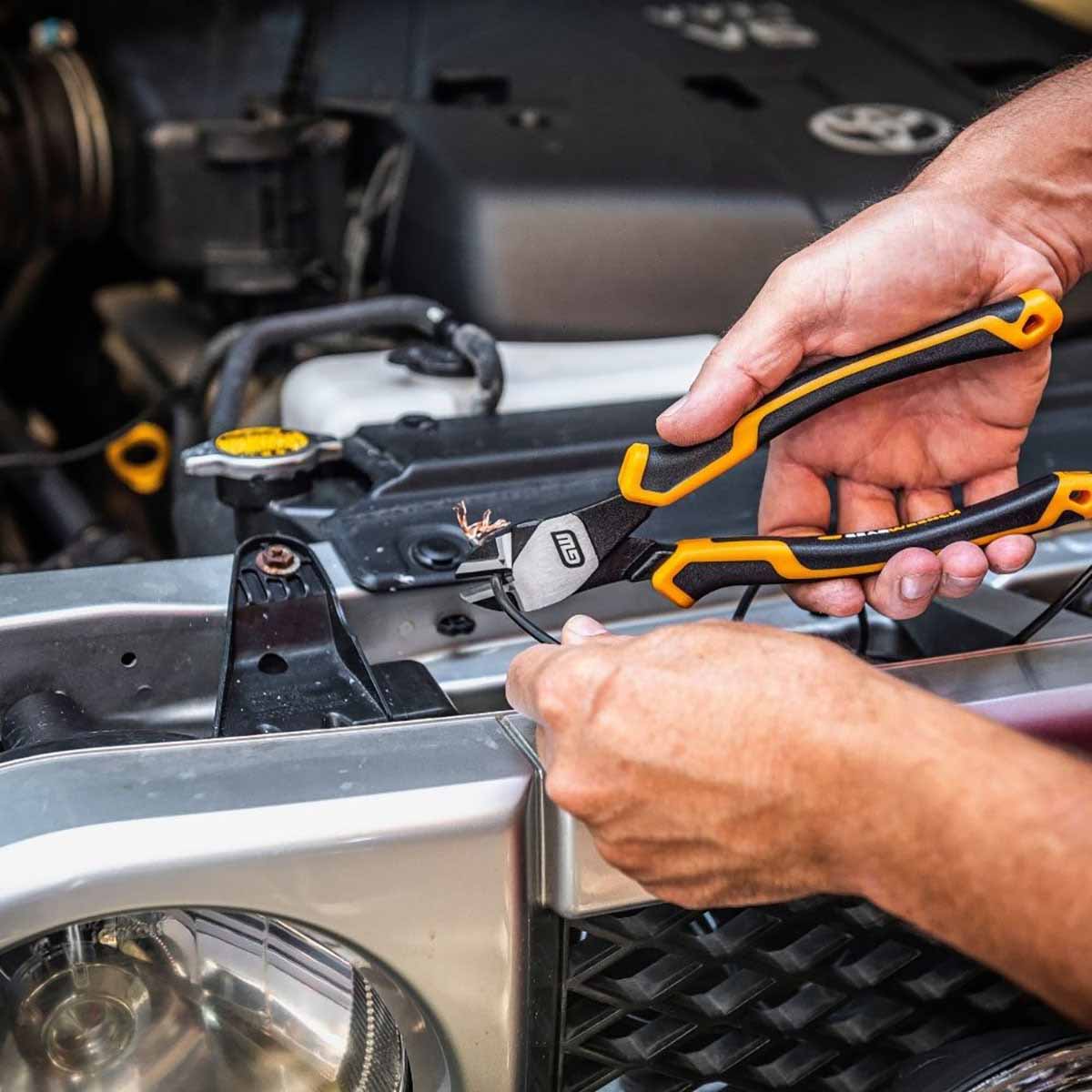 The GEARWRENCH Pitbull line of pliers is GEARWRENCH's most advanced range of industrial pliers. The Pitbull line of pliers offer the industrial / automotive technician the best grip and cut day in and day out. They are forged from alloy steel and precision machined for long life and durability. The Pitbull pliers offer unique features such as the K9 Jaws which provide a strong grip, even when on a 35° angle and a high leverage joint design which provides up to 35% greater cutting power.