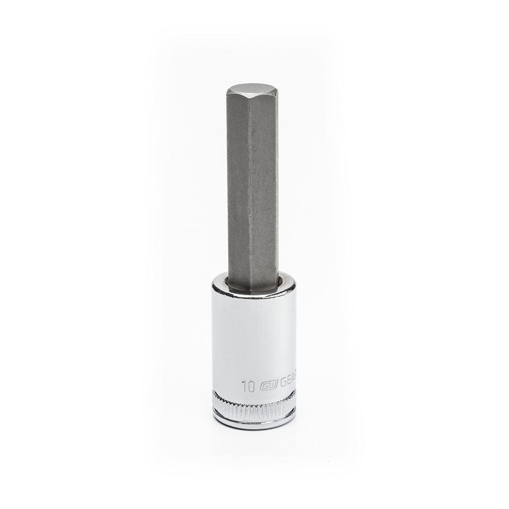 Living up to the reputation of the brand, GEARWRENCH chrome bit sockets deliver unprecedented speed, strength, and access to almost any job. Large, hard-stamped markings allow for easy identification and can be easily recognized as SAE (double line) or metric (knurled line). Available in standard, mid, and long bit lengths, the chrome hex bit sockets include the most commonly used sizes. The bits are manufactured from S2 steel to the highest tolerances to guarantee a precise fit. GEARWRENCH sockets will get the job done.