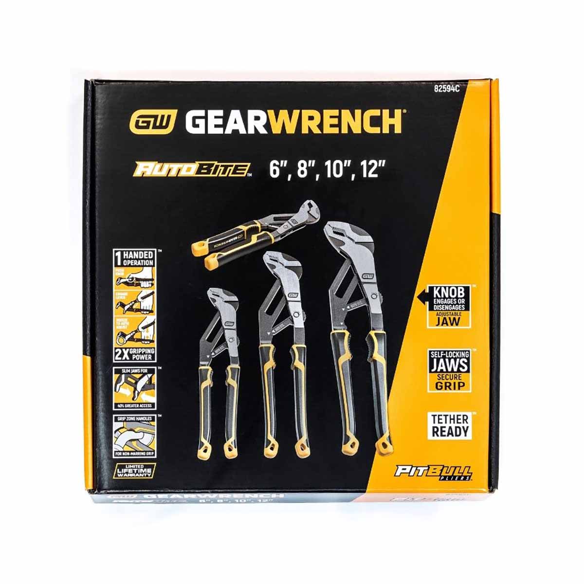 GearWrench 82594C 4 Pc. Pitbull Auto-Bite Tongue & Groove Dual Material Pliers