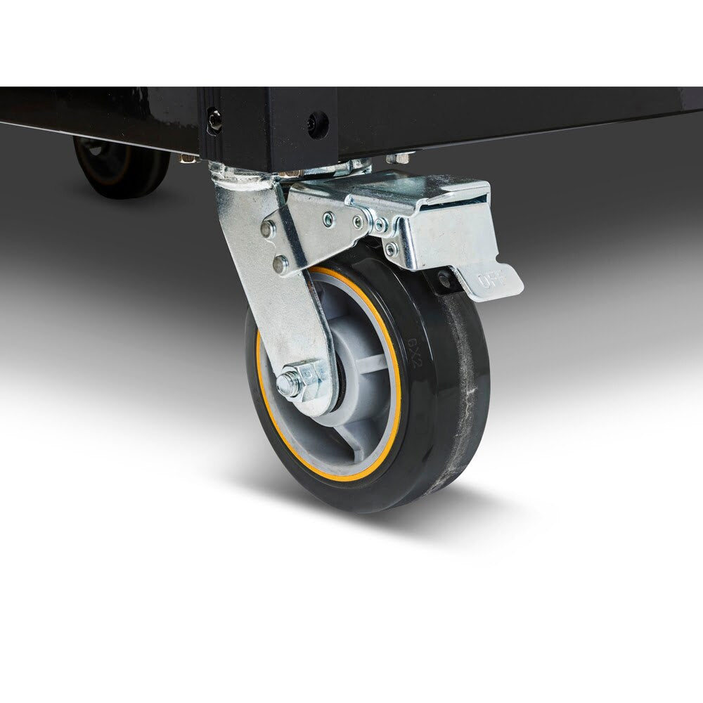 - Extra-large 6 In. x 2 In. industrial casters provide easy mobility around the work area