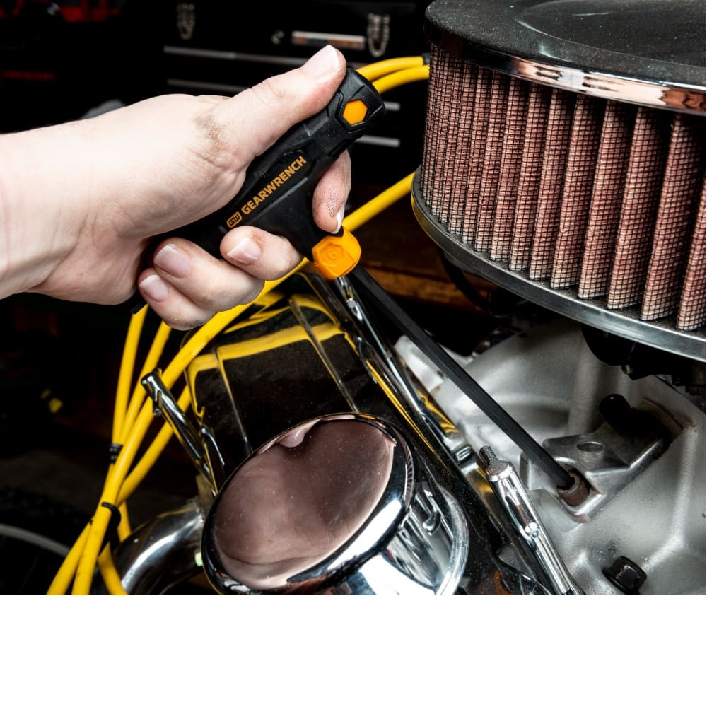 The GEARWRENCH 10 piece SAE t-handle ball end hex key set includes hex keys made from alloy steel to deliver maximum strength and resist rotational distortion. Ball end design provides increased access at 25 degrees, and T handles offer a comfort grip for non-slip use and greater torque.