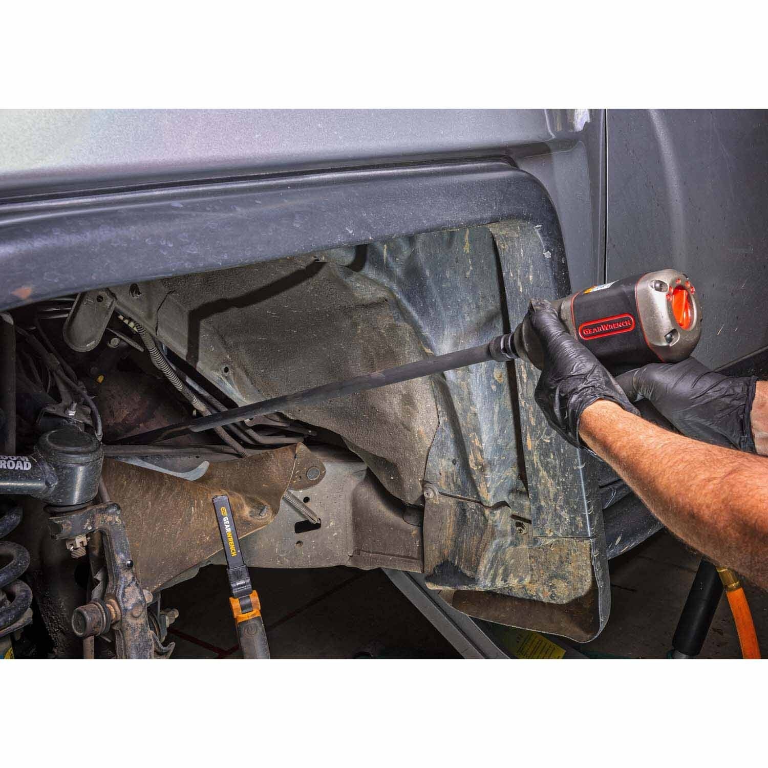 GEARWRENCH impact locking extensions are made from chrome molybdenum alloy steel for great strength and durability. Drive end has a pin hole to use with pin and o-ring for securing to the impact wrench. The slide locking mechanism securely attaches socket to the extension. Extensions have a manganese phosphate coating for corrosion resistance. The 84653N is a 1/2 In. drive and is 31 In. long.