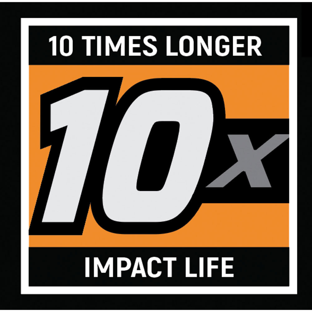 - Up to 10x longer impact life vs competition