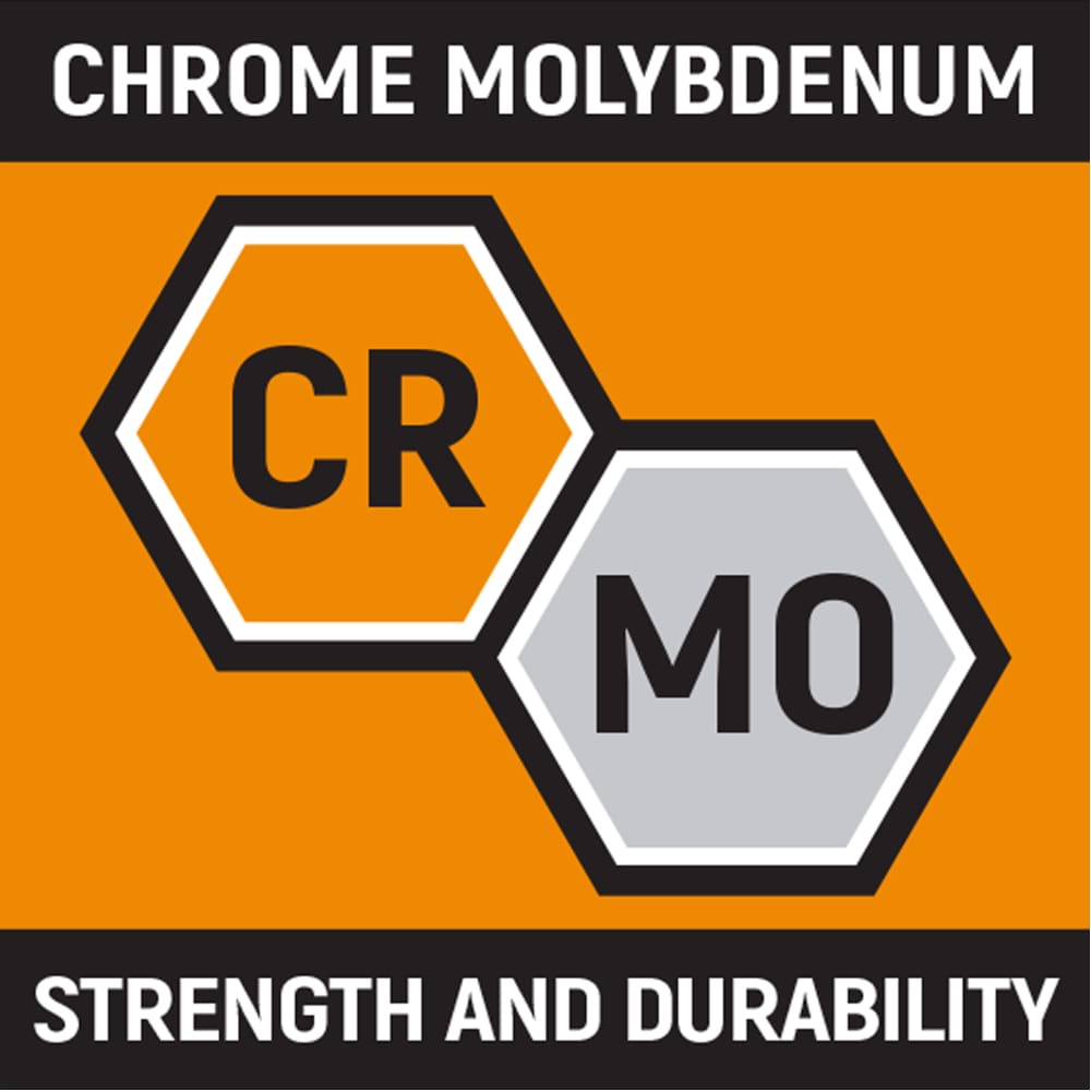 - Chrome molybdenum alloy steel (Cr-Mo) for exceptional strength and durability