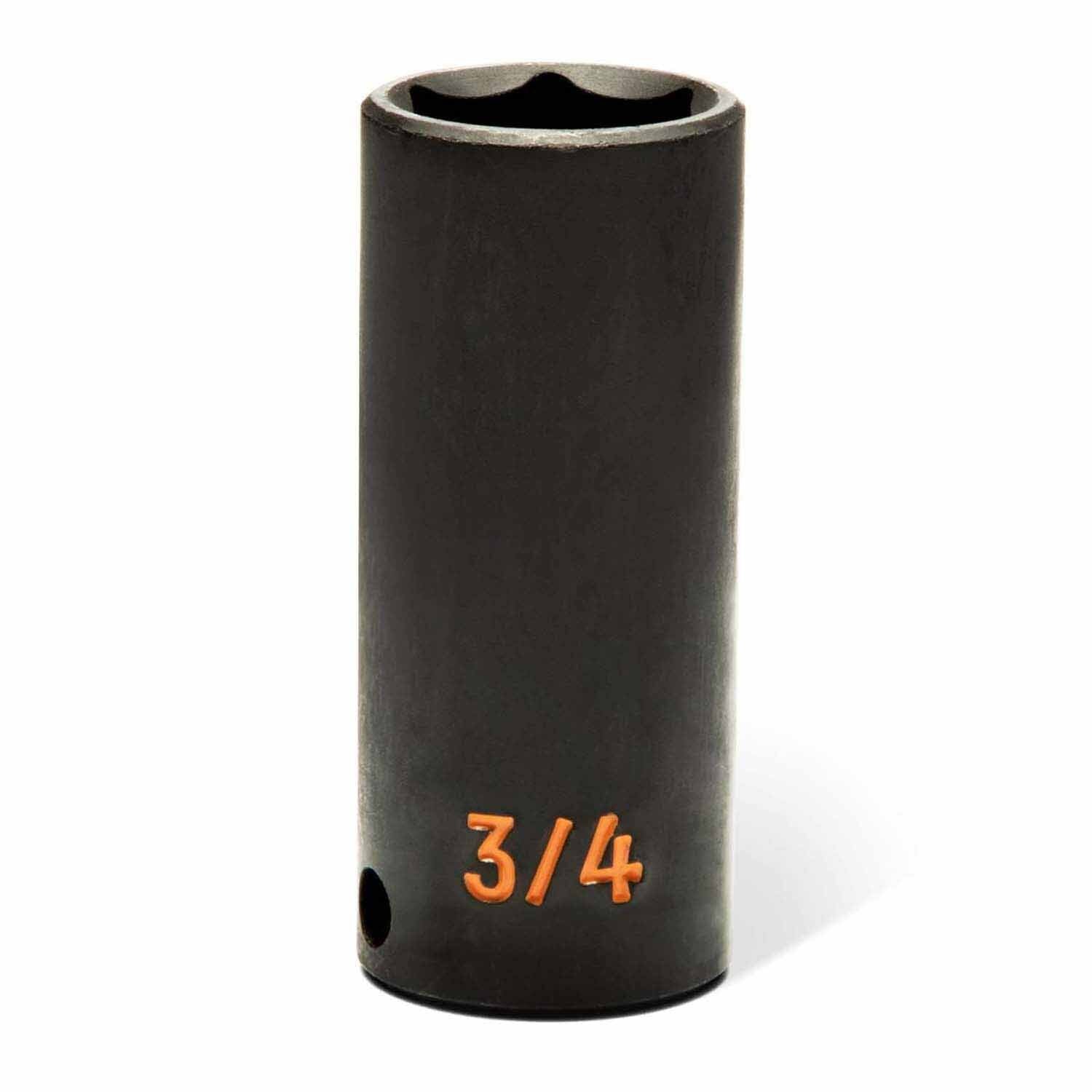 High-performance deep impact socket set made from durable Cr-Mo steel with large, hi-viz ink-filled size markings for quick identification. Off-corner loading reduces fastener rounding, and the industrial black finish resists corrosion. Meets or exceeds ASME specifications.