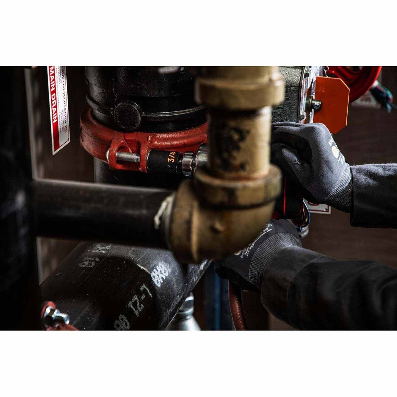 High-visibility 1/2 in. drive impact socket set made from durable Cr-Mo steel with large ink-filled size markings for quick identification, off-corner loading to reduce fastener rounding, industrial black finish for corrosion resistance, and meets or exceeds ASME specs.