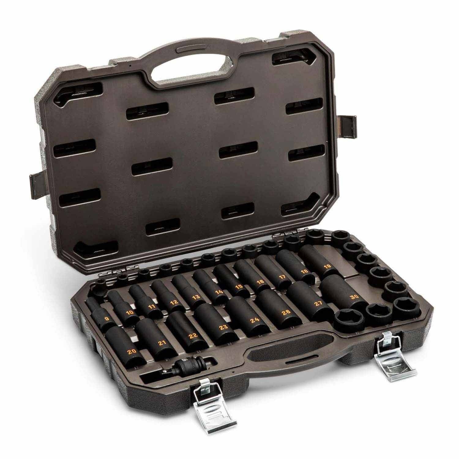 GearWrench 84948H 39 Piece 1/2" Drive 6 Point Metric Hi-Viz Standard & Deep Impact Socket Set