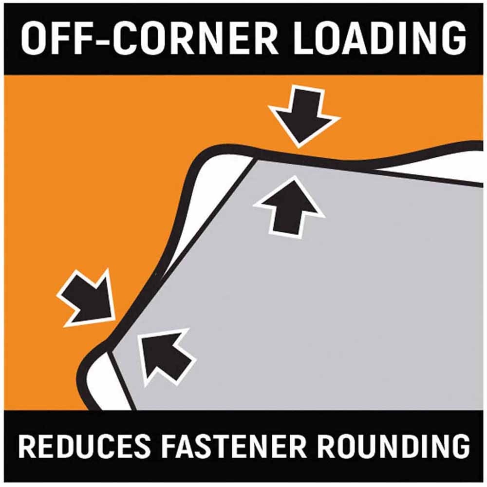 - Off-corner loading design on box end provides better grip and reduces fastener rounding