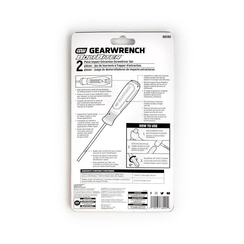 GearWrench 86090 2-Piece Bolt Biter Dual Material Extraction Screwdriver Set
