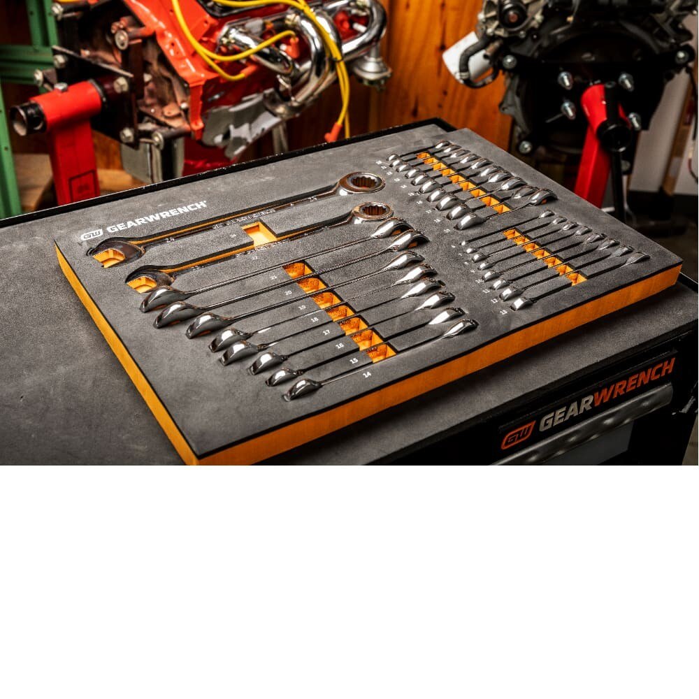 GearWrench 86527 28 Pc. 72-Tooth 12 Point Metric Standard & Stubby Combination Ratcheting Wrench Set with EVA Foam Tray
