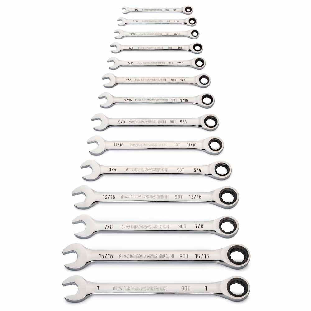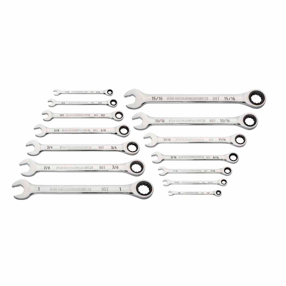 GearWrench 86959 14 Pc. 90-Tooth 12 Point SAE Combination Ratcheting Wrench Set