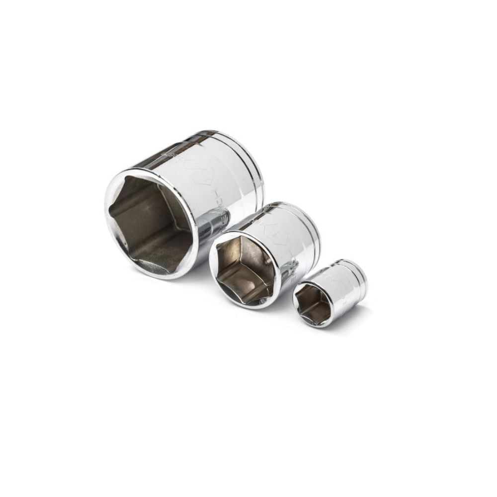• Size: 1/4" Dr. Standard: 5/32, 3/16, 7/32, 1/4, 9/32, 5/16, 11/32, 3/8, 7/16, 1/2, 9/16, 4mm, 5mm, 5.5mm, 6mm, 7mm, 8mm, 9mm, 10mm, 11mm, 12mm, 13mm, 14mm, 15mm, 1/4" Dr. Deep 3/16, 7/32, 1/4, 9/32, 5/16, 11/32, 3/8, 7/16, 1/2, 9/16, 4mm, 5mm, 5.5mm, 6mm, 7mm, 8mm, 9mm, 10mm, 11mm, 12mm, 13mm, 14mm, 15mm, 3/8" Dr. Standard: 1/4, 5/16, 3/8, 7/16, 1/2, 9/16, 5/8, 11/16, 3/4, 13/16, 7/8, 15/16, 1, 6mm, 7mm, 8mm, 9mm, 10mm, 11mm, 12mm, 13mm, 14mm, 15mm, 16mm, 17mm, 18mm, 19mm, 20mm, 21mm, 22mm, 3/8" Dr. Deep 1/4, 5/16, 3/8, 7/16, 1/2, 9/16, 5/8, 11/16, 3/4, 13/16, 7/8, 15/16, 1, 6mm, 7mm , 8mm, 9mm, 10mm, 11mm, 12mm, 13mm, 14mm, 15mm, 16mm, 17mm, 18mm, 19mm, 1/2" Dr. Standard: 3/8, 7/16, 1/2, 9/16, 5/8, 11/16, 3/4, 13/16, 7/8, 15/16, 1, 1-1/16, 1-1/8, 1-3/16, 1-1/4, 1-1/2, 10mm, 11mm, 12mm, 13mm, 14mm, 15mm, 16mm, 17mm, 18mm, 19mm, 20mm, 21mm, 22mm, 23mm, 24mm, 1/2" Dr. Deep: 7/16, 1/2, 9/16, 5/8, 11/16, 3/4, 13/16, 7/8, 15/16, 1, 1-1/16, 1-1/8, 1-1/4, 1-1/2, 10mm, 11mm, 12mm, 13mm, 14mm, 15mm, 16mm, 17mm, 18mm, 19mm