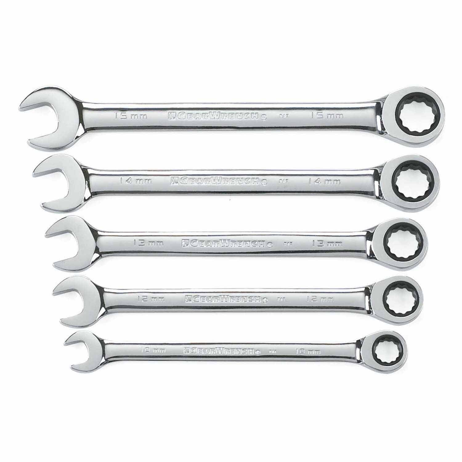 Gearwrench 93004D 5 Pc. 72-Tooth 12 Point Ratcheting Combination Metric Wrench Set