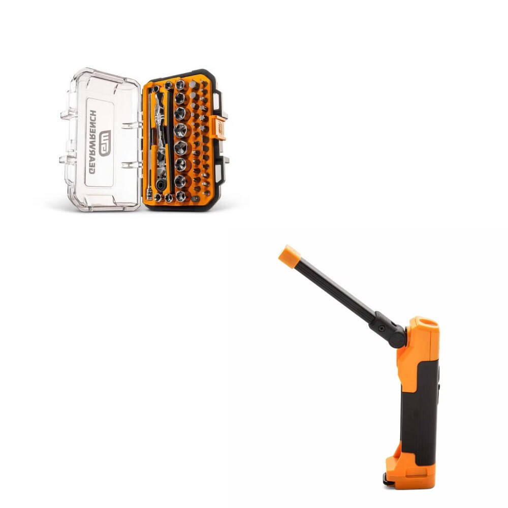 GearWrench bundles a compact 41?piece MicroDriver mechanics set with a versatile flex?head rechargeable light to handle precision fastening and low?light tasks. The tool set’s 1/4 in. drive 72?tooth ratchet, SAE/metric sockets, bits, and extension deliver access and control in tight spaces. The flex?head light adds magnetic positioning, multiple modes, and long run time for shop, auto, and field work. Together, this kit equips pros and DIYers for efficient repairs and maintenance.