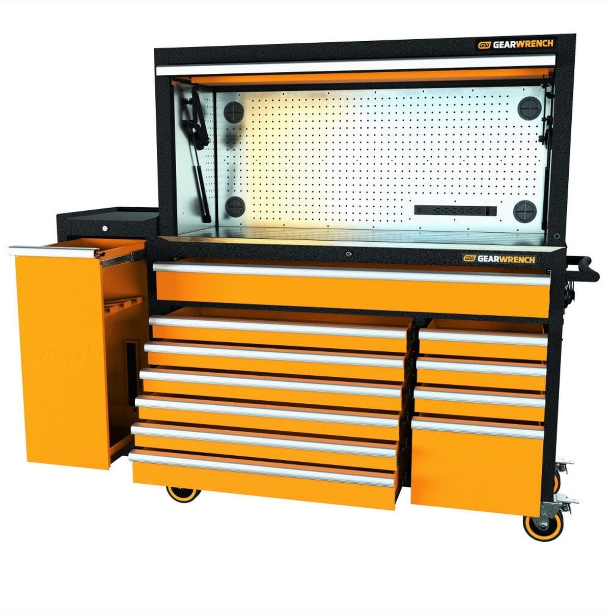 - Includes six storage units for maximum shop efficiency: a 52" rolling tool cabinet and hutch, 15" power tool side locker, 26" tool chest, 26" rolling cabinet, and a diagnostic cart, all purpose-built for professional organization and quick access