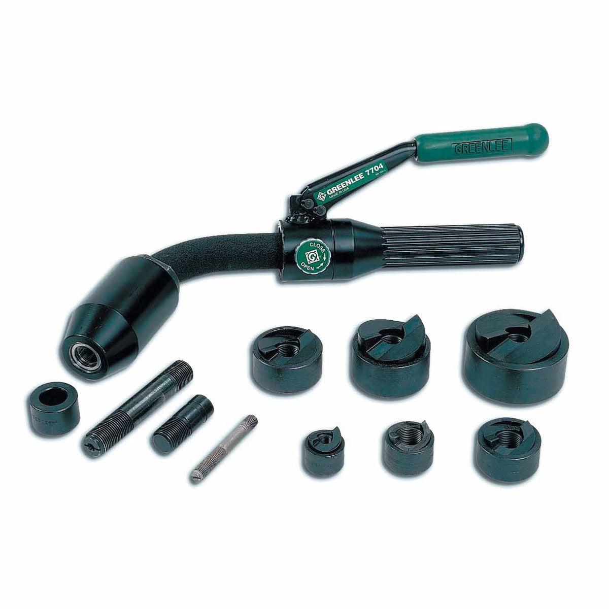 - Develops 8 tons of hydraulic force for easy punching, even in 10-gauge stainless steel, depending on individual punch capacities.