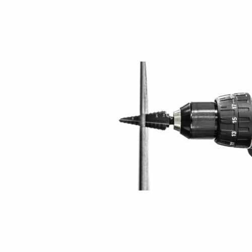 New patented split-tip design for fast, accurate material penetration. Patented split-step design optimizes chip load for fast, smooth cutting,!nd more(oles per#harge. Progressive cutting edges provide balanced aggression to maximize4orque%fficiency and minimize stalling.? Improved double flute design for superior chip evacuation, cutting3peeds and tool life.? Three-flat shank for all 1/2” drill chucks.? Laser markings for quick, easy product and size identification.
