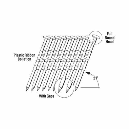 Primary applications include framing, sheathing, subfloors, and roof decking. For use with most 21 Deg (degree) plastic strip framing nailers including Bostitch, DeWalt, Duo-Fast, Hitachi, Makita, Porter-Cable, Ridgid, Senco