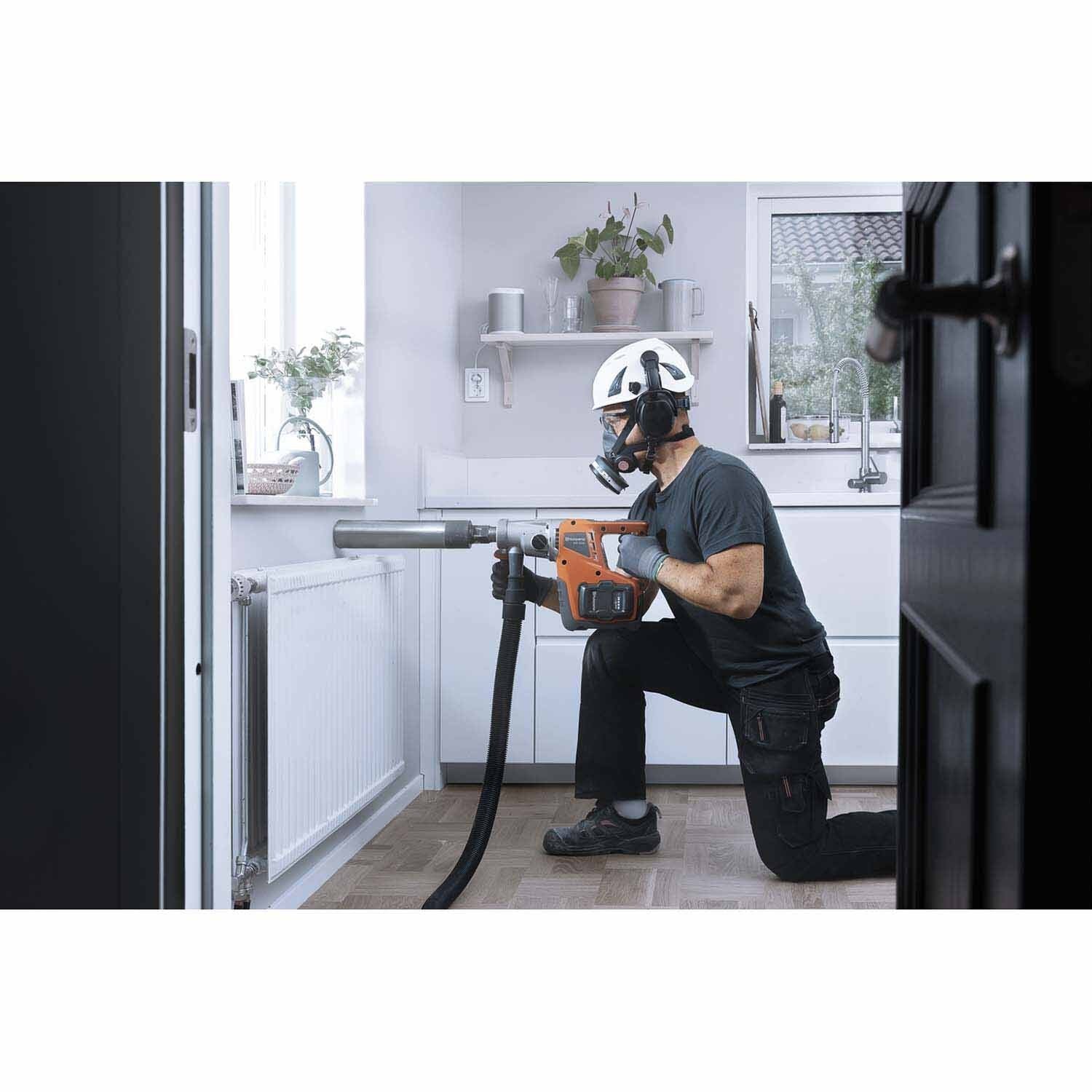 The Husqvarna DM 540i is a powerful, lightweight battery-powered core drill optimized for handheld wet or dry drilling up to 3 in and up to 4 in when used with the DS 150 stand. Compatible with BLi-series batteries, it features excellent ergonomics, low weight, and built-in connectivity for monitoring location, runtime, service intervals, and wireless updates. Ideal for plumbing, electrical, HVAC installations, and drilling in light reinforced concrete, brick, and lightweight block.