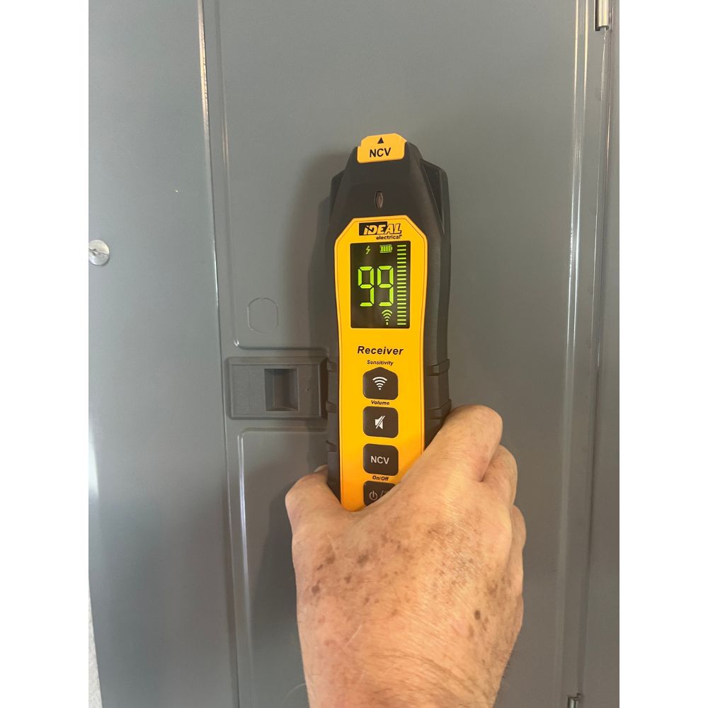 - Receiver features dual high visibility displays visible in all conditions/positions via a patented 180° main display and patented TightSight® secondary display making high/low tracing and breaker identification in tight spaces easier.