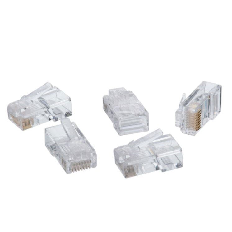 CAT5e 8P8C (eight position/eight contact) modular plug connectors which support TIA/EIA standards for twisted pair cabling up to 100 MHz. IDEAL modular plugs are designed to work seamlessly with the IDEAL Telemaster™ and FT-45™ series of modular plug crimp tools. Plugs are designed and manufactured to support all 100Ω cable wiring schemes including the widely used TIA-568A and TIA-568B configurations. IDEAL modular plugs are manufactured to strict industry standards and tolerances that utilize traditional preparation and termination methods. These proven and preferred methods allow for improved compatibility among manufacturers and devices around the world without the need for special tooling or preparation methods and eliminate the risk of shorts and crosstalk often associated with open end or feed through type connectors.