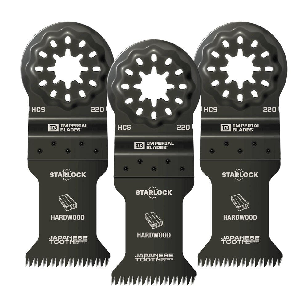 Imperial Blades' Starlock™ 1-3/8" Japanese Tooth Hardwood Blade is composed of high carbon steel (HCS) for medium-duty wood applications. The double row, triple-ground Japanese tooth configuration is designed for up to 2X faster cuts than standard Imperial wood blades. Specifically engineered for precise, clean cuts in Hardwood, Wood, PVC, Drywall and other soft materials. Popular projects include cutting trim, flooring and dowels. Not designed for metal contact. Compatible with Starlock™ multi-tools: Bosch and Fein. Also fits non-Starlock multi-tools: Milwaukee, Ridgid, Makita, Rockwell and more.