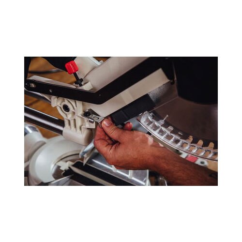 - Dual bevel capability with up front controls to maximize cutting of compound angles