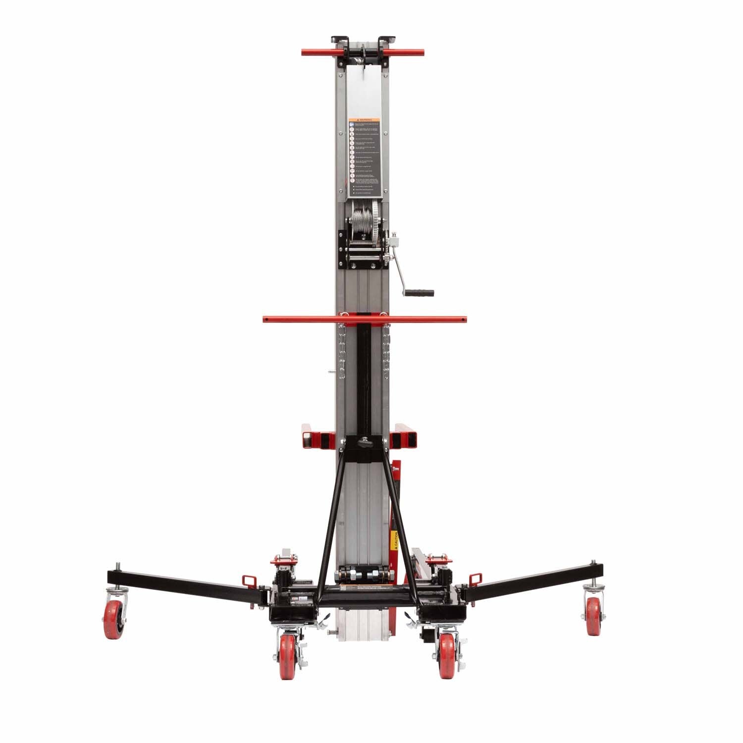 JET JML-18X material lift delivers industry-leading versatility and safety with a drill-drivable winch, integrated forklift pockets, large 6 in. casters, and multiple operating modes for lifting up to 18 feet.