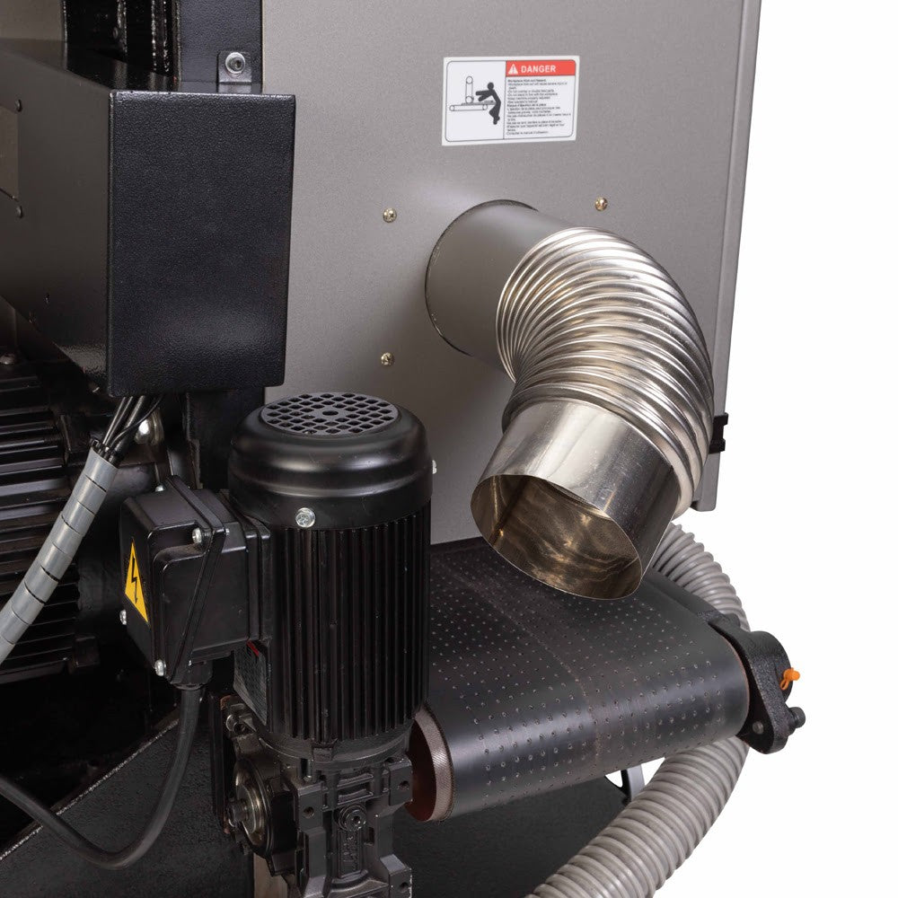 - Vacuum suction on the conveyor belt holds smaller pieces in place, eliminating shifts to produce better finishing and reducing belt damage