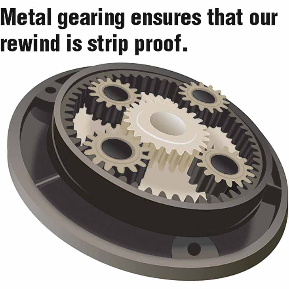 - Metal, planetary gearing for super-fast rewind & no more stripped gears