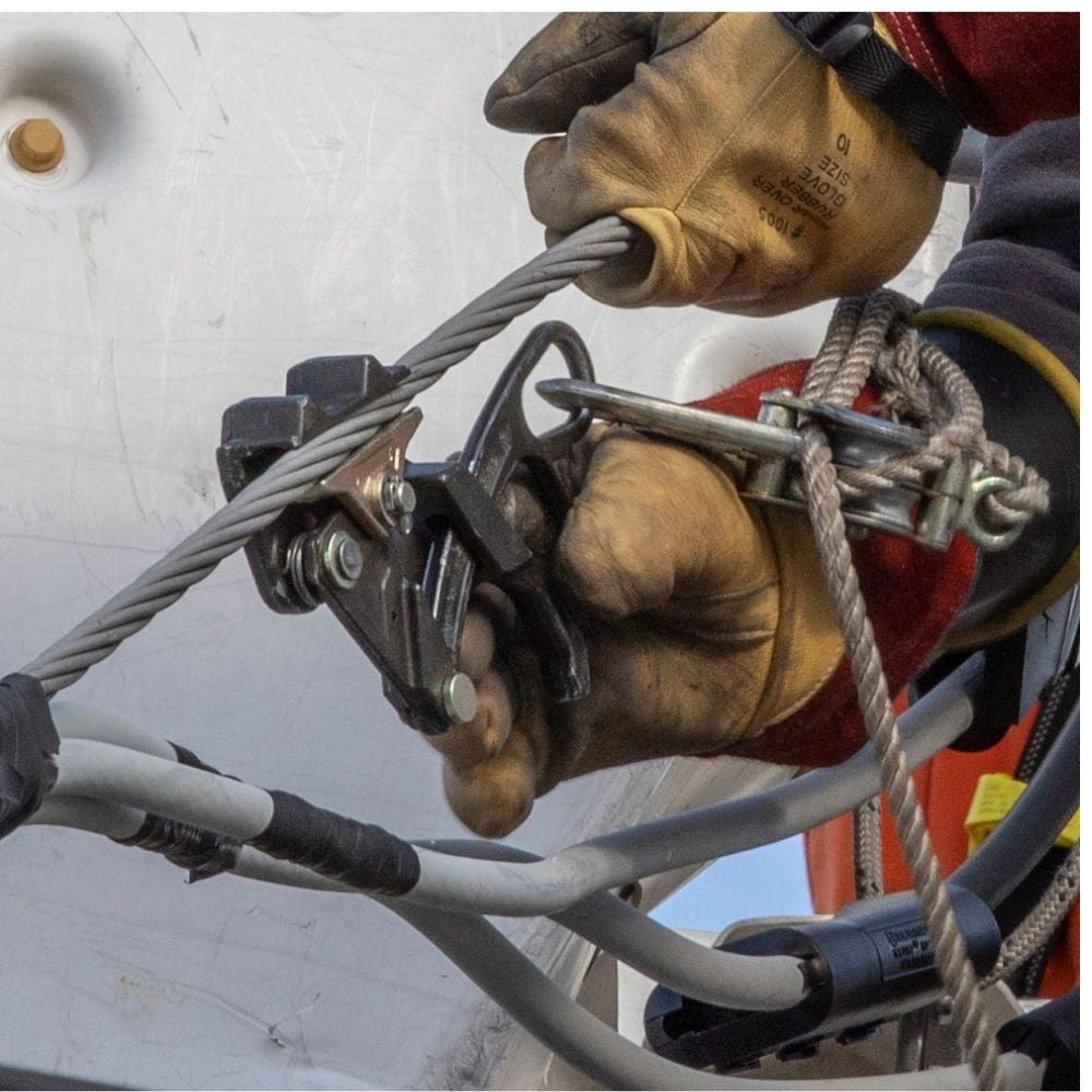 Versatile, one-handed grip holds a wide range of cable sizes pulling No. 6 Copper to No. 477 ACSR. 20-Percent lighter than Klein's Cat. No. KT4500 grip with easy, one-handed actuation. Made in the USA, this grip has a maximum safe load of 5000-Pound (2268 kg).