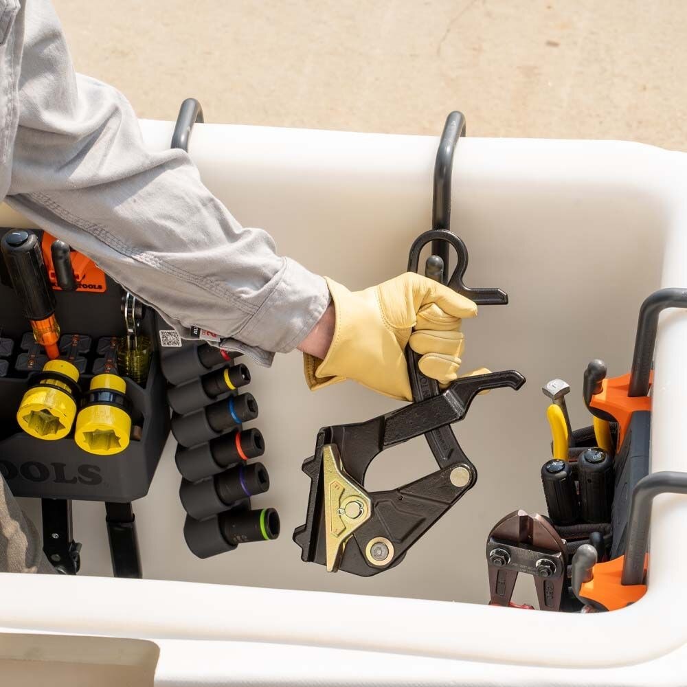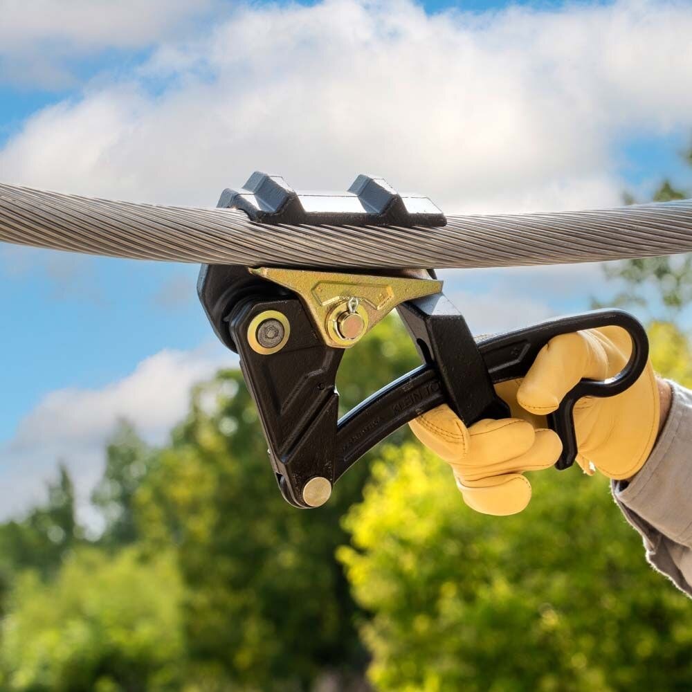 The Klein Tools Wide Range Transmission Grip was specifically designed to securely pull ACSR, AAC and bare copper cables. Holds a wide range of cable from 0.68-Inch to 1.42-Inch (17.3 mm to 36.1 mm). This grip has a maximum safe load of 12,000-Pound (5443 kg).