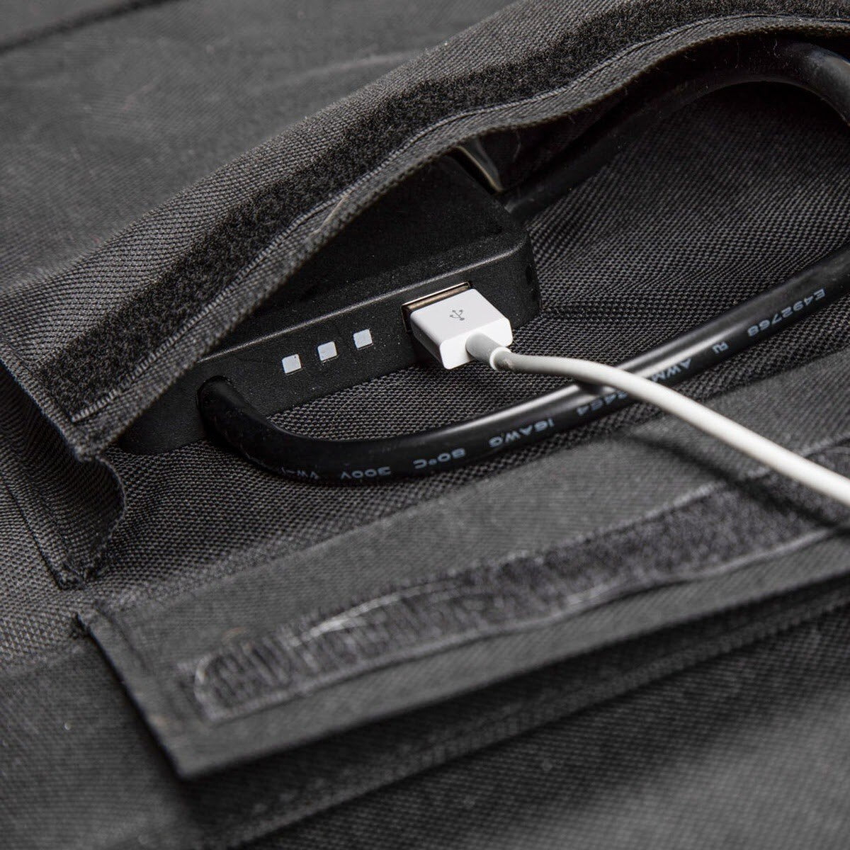 - Reinforced handle, adjustable shoulder strap, and power pocket