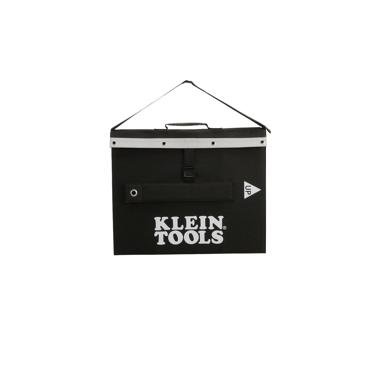 Foldable 60-watt monocrystalline solar panel with kickstands, integrated USB-A port, and APP compatible 18V output for charging Klein power stations and other devices; includes 16.4 ft cable and adapter to 8mm DC.
