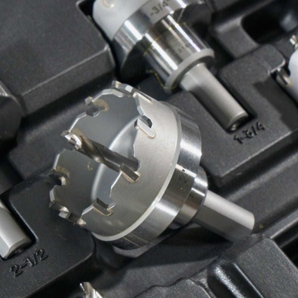 This hole cutter kit cuts quick, precise holes in a variety of materials. Includes six commonly used size plus two extra pilot bits. Integrated flange prevents the operator from drilling beyond the sheet metal. Split point pilot drill bit prevents bit walking.
