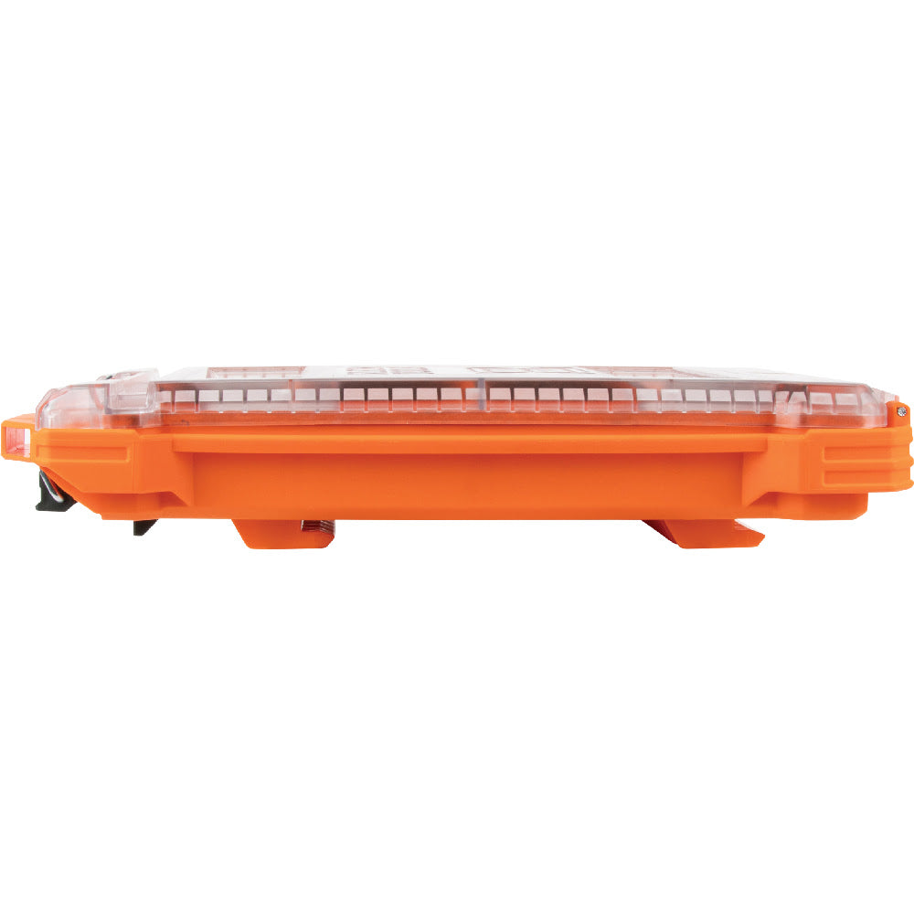 Klein Tools MODbox™ Tool Bag, Tote, and Backpack Component Box comes with 3 removable dividers and a stay-put lid designed to keep contents from shifting. The clear lid provides an easy view of contents. Component box is IP65 rated and made with impact resistant polymers. Designed to connect to the bottom of the Electrician's Backpack, Tool Tote or Tool Bag (Cat. Nos. 62201MB, 62202MB, 66203MB) which easily connects with other MODbox™ components to make a custom mobile workstation.