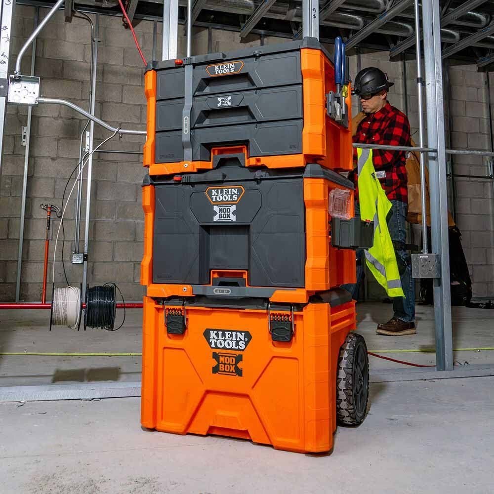 Klein Tools MODbox™ Three Drawer Toolbox features a reinforced bottom to prevent drawer sag. Heavy-duty ball bearing slides provide smooth drawer action. It comes with 24 removable dividers for optimal storage flexibility. Integrated locking bar secures drawer contents and cable lock feed-through secures overall system. Three Drawer Toolbox is made with impact resistant polymers and supports 50 pounds (22.7 kg). Easily connects with other MODbox™ components to make a custom mobile workstation.