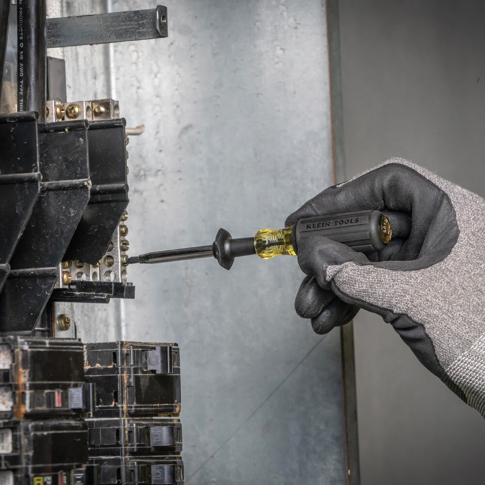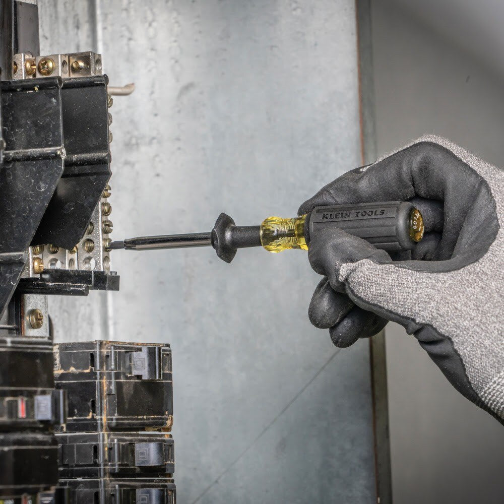 The Klein Tools 3/16-Inch Slotted Screw-Holding Screwdriver is designed with positive gripping action to hold, start and drive slotted screws in awkward, hard-to-reach places. The unique split-blade screw-holding driver can wedge into the screw slot. The exclusive Cushion-Grip™ handle offers greater torque and outstanding comfort.