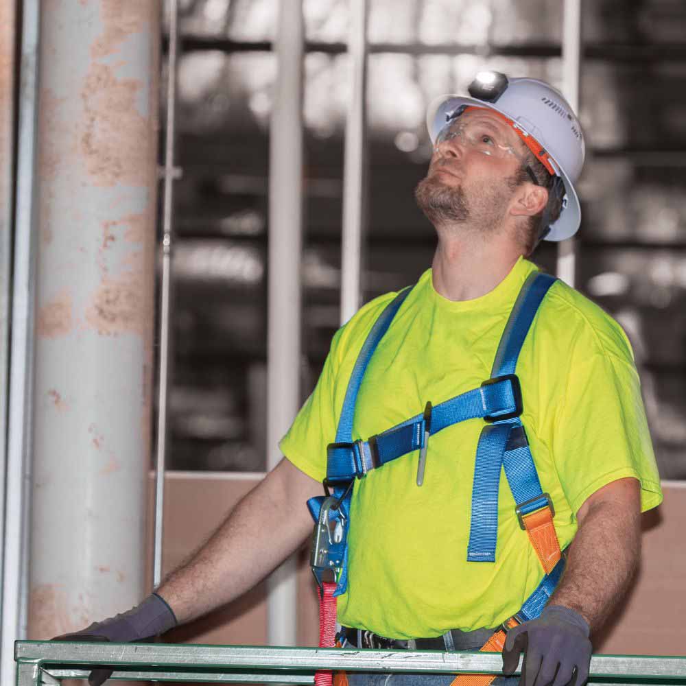 • Safety hard hat has patent-pending accessory mounts on front and back attach Klein Headlamps securely, every time — no straps or zip ties needed!
