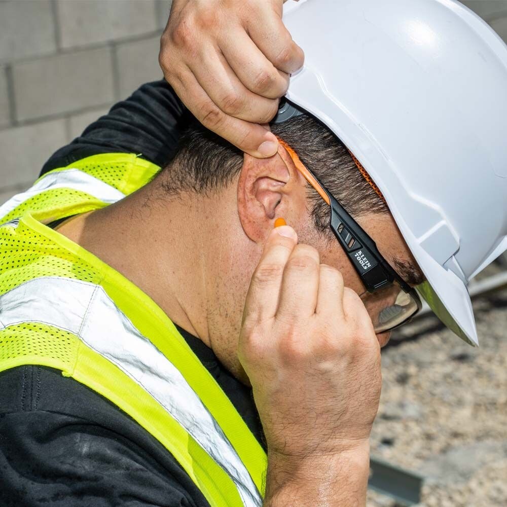 Klein Tools Foam Earplugs, 10-Pair, help reduce exposure to hazardous noise and other loud environments. The soft disposable foam design conforms to the ear canal for optimal comfort and a snug fit. Tested in accordance with ANSI S3.19-1974 standards. Comes in convenient pouch. Also available in 50-Pair dispensing box.