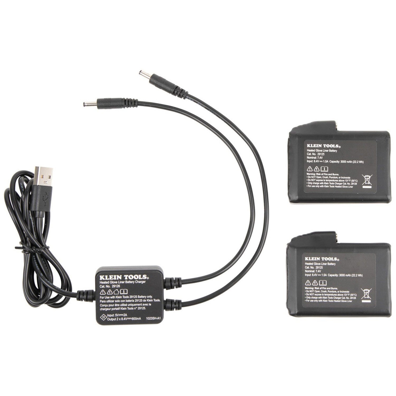 Klein Tools HeatTek rechargeable heated glove liners slip under work gloves to deliver focused warmth to the fingertips, outer hand and wrist while maintaining dexterity. Stretchable, breathable, touchscreen-compatible spandex fabric with extended cuffs and two heat settings keeps hands comfortable for hours in cold conditions.